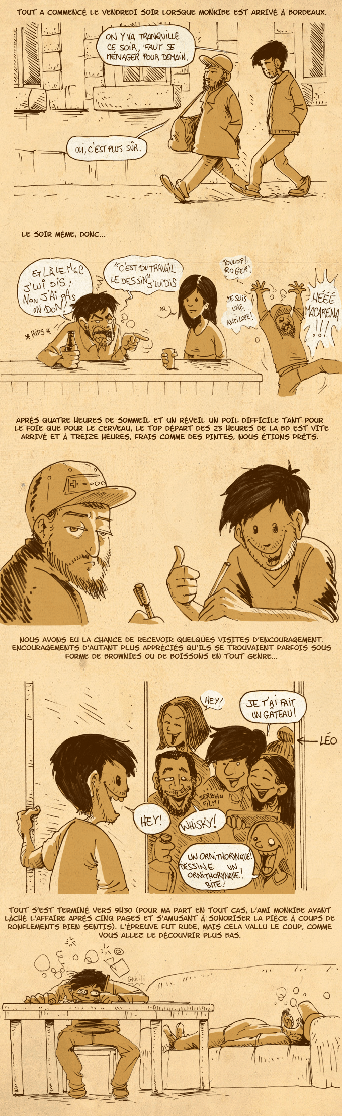 L’ami Monkibe (venu pour l’occasion de Paris pour y participer) et moi-même avons donc laissé sueur et larmes dans l’accomplissement de ces heures dessin.