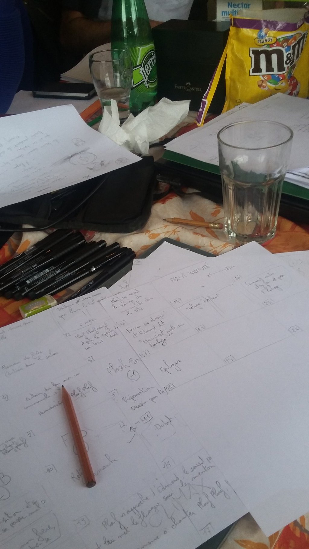 Les deux premières heures, nous réalisons le scénario. Pour cela, plusieurs étapes et beaucoup de discussions/désaccords/engueulades/combats à mort à mains nues :