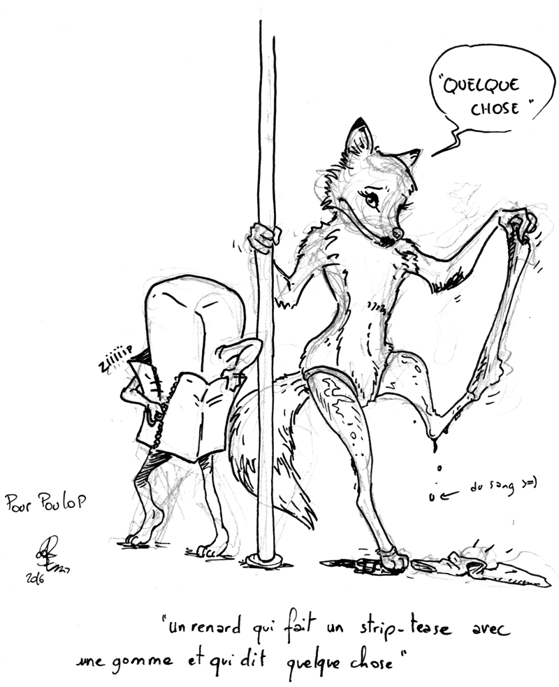 Non contents de venir discuter et boire un verre (ou quatre), quelques lecteurs m’ont fait des gribouillis tous plus fabuleux et absurdes les uns que les autres (bon, j’ai un peu menacé les gens et toutes leurs familles pour qu’ils dessinent mais c’est un détail). Voici les œuvres réalisées entre deux discussions sans queue ni tête, mais fort agréables. Merci à eux.