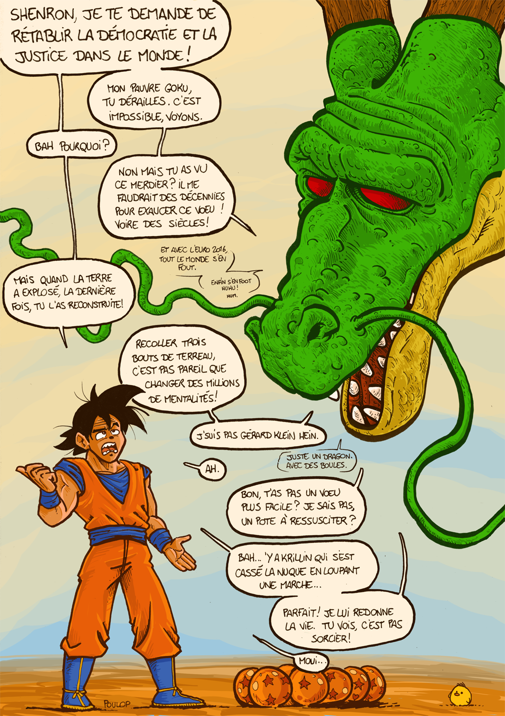 Bonus à ce dessin : un piou sur la tête de Krillin.