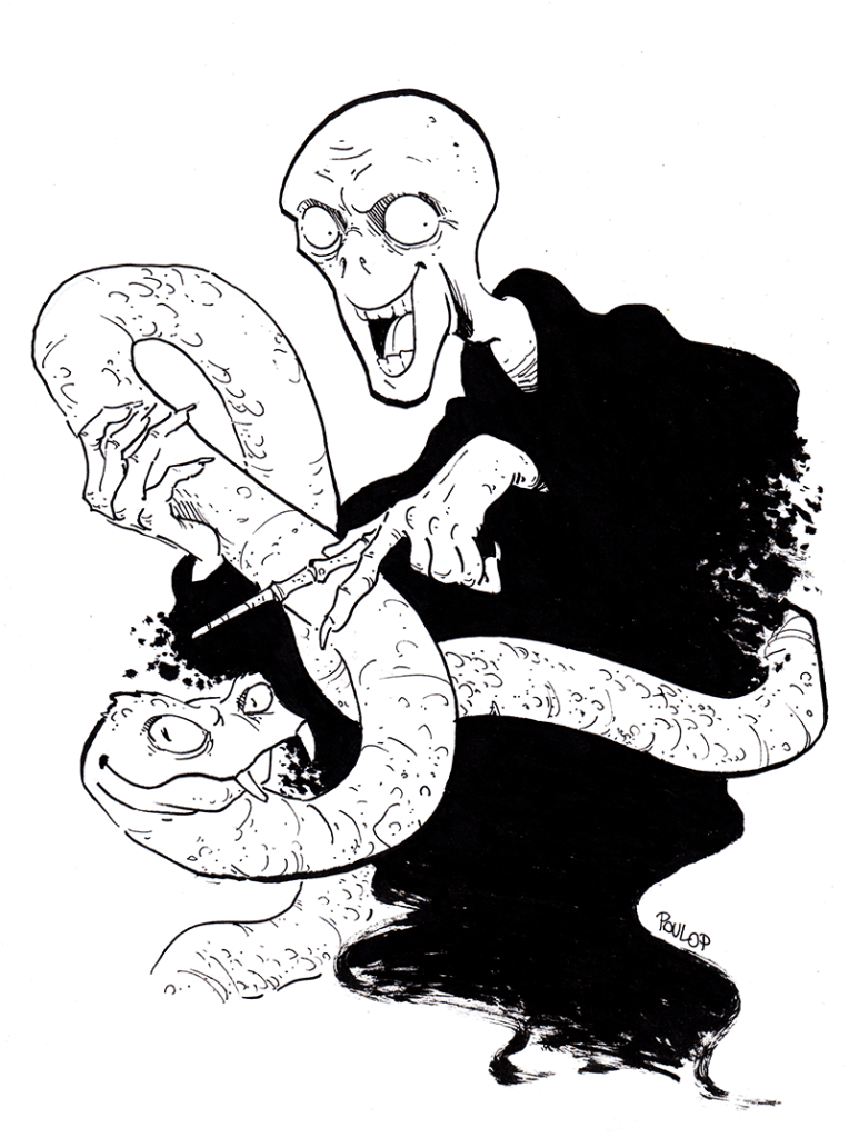 Oui alors comme vous pouvez le constater, il y a eu un problème de temps et de disponibilité pour ce jour-ci pour respecter les thèmes, mais à la place j’ai gribouillé Voldemort. Voilà.