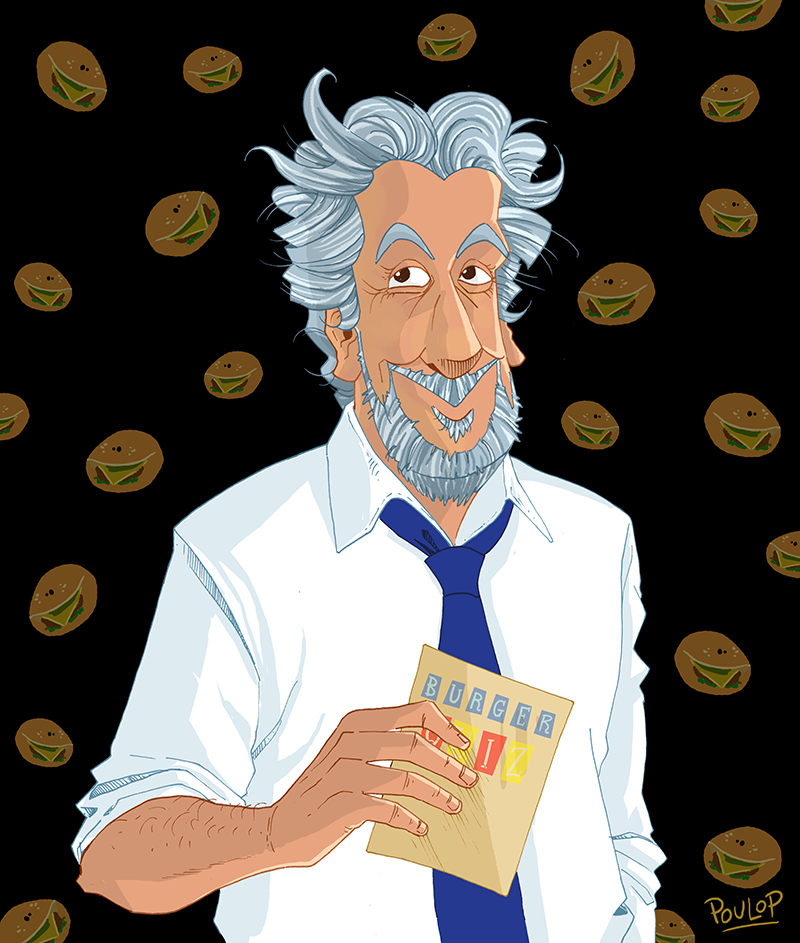 Toujours en compétition avec l’artiste Clara Lang, mais aussi de nouveaux venus qui se sont prêtés au jeu pour cette deuxième fois, je présente aujourd’hui la bouille du seul et unique Alain Chabat, ancien Nul et actuel présentateur du Burger Quiz.