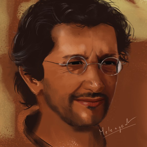 Et enfin la version de Meleagant, qui a tiré ce portrait en pas plus d’une heure et demi parce que bon, un dessin sans contrainte, c’est comme une soupe sans moustaches, comme on dit.