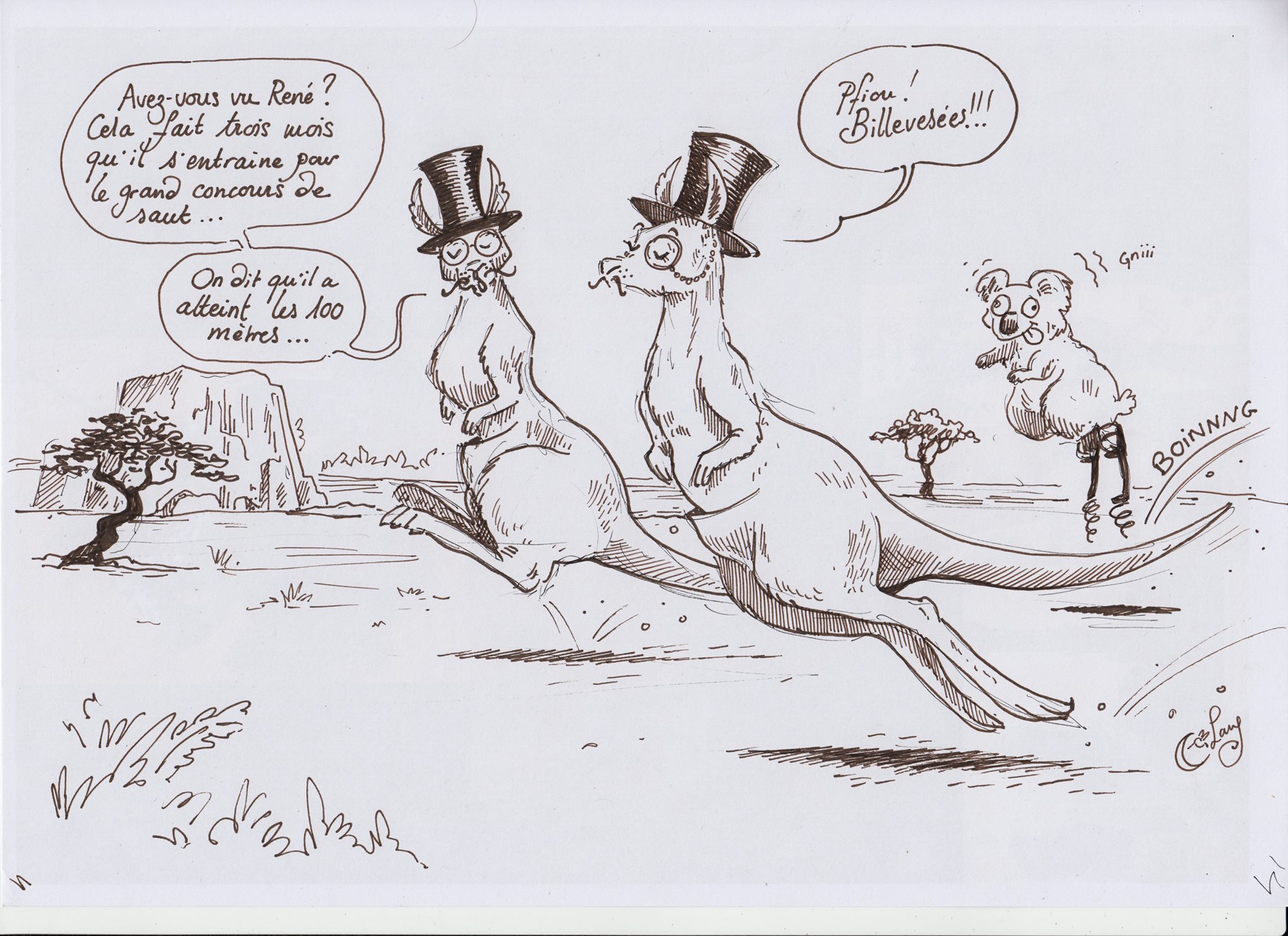 Un kangourou dessiné par Clang devient-il un Clangourou ? La question est ouverte. Je vais prendre un cachet. La page de Clang : https://www.facebook.com/Clang-dessins-et-peintures-dun-colibri-1425531864346028/