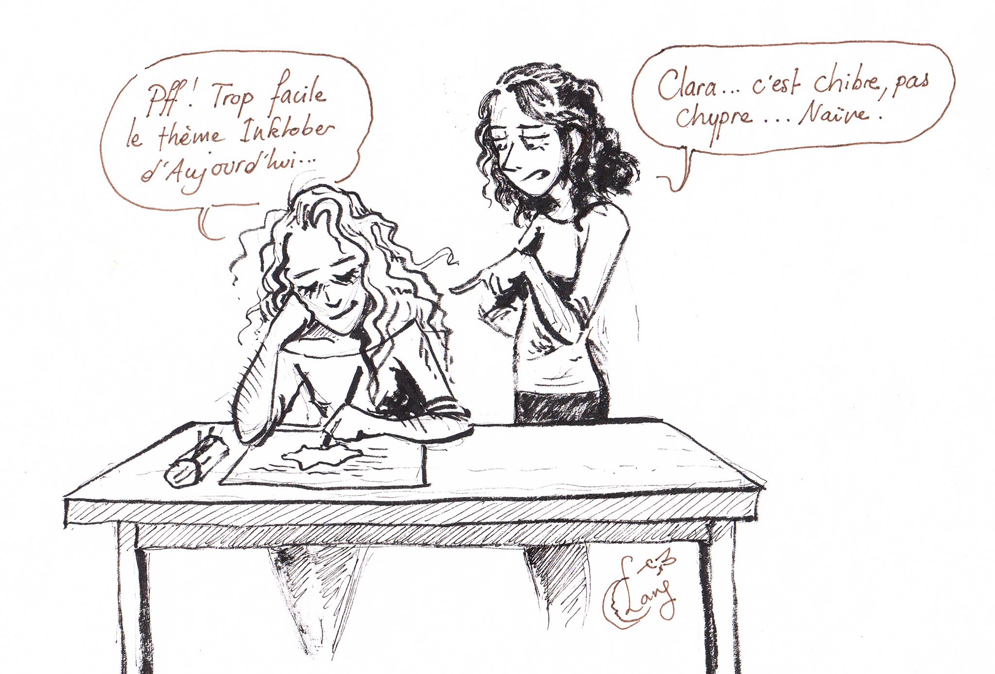 Clang n’est pas innocente. Elle est l’innocence même. Enfin des fois. Les soirs de pleine lune. Sa page : https://www.facebook.com/Clang-dessins-et-peintures-dun-colibri-1425531864346028/