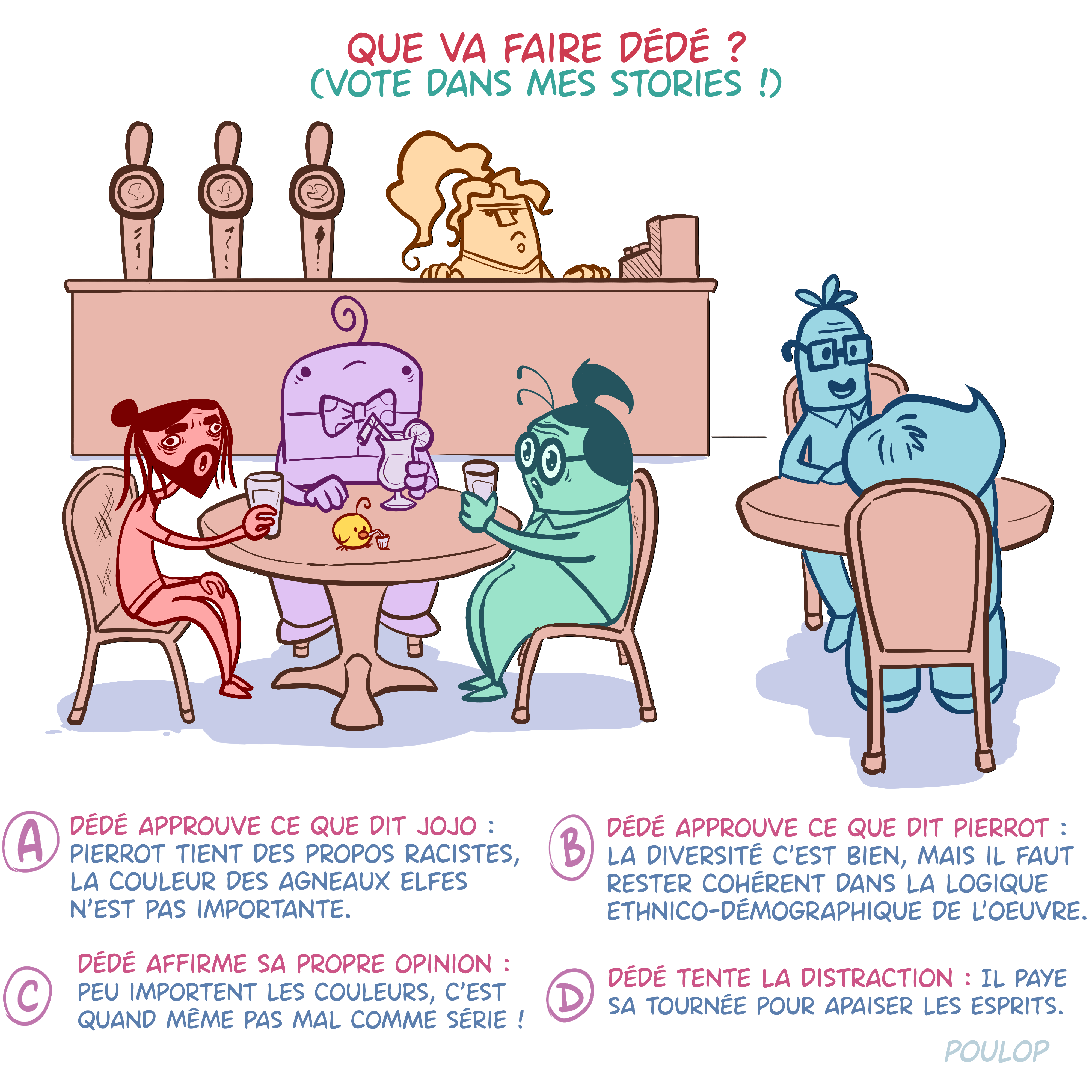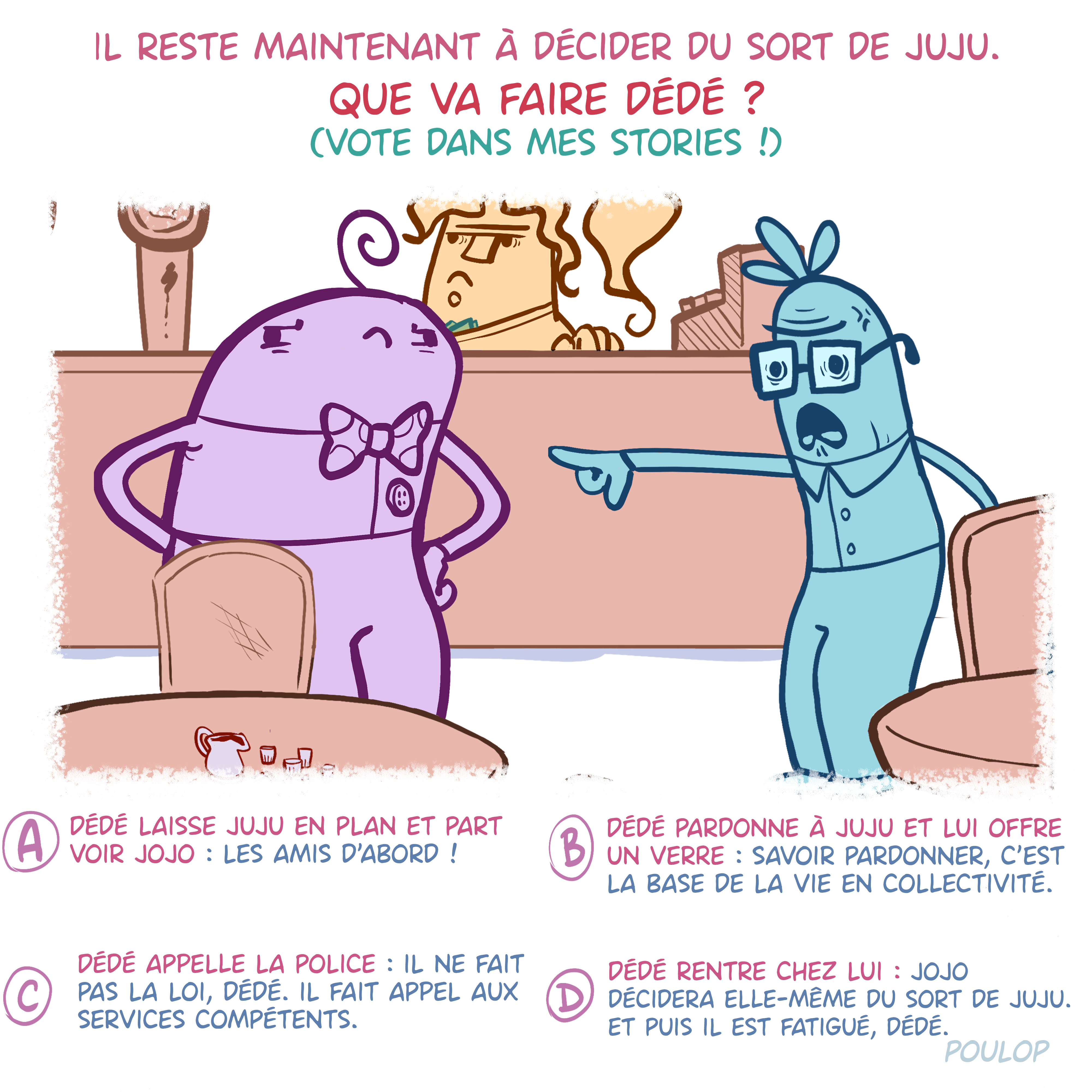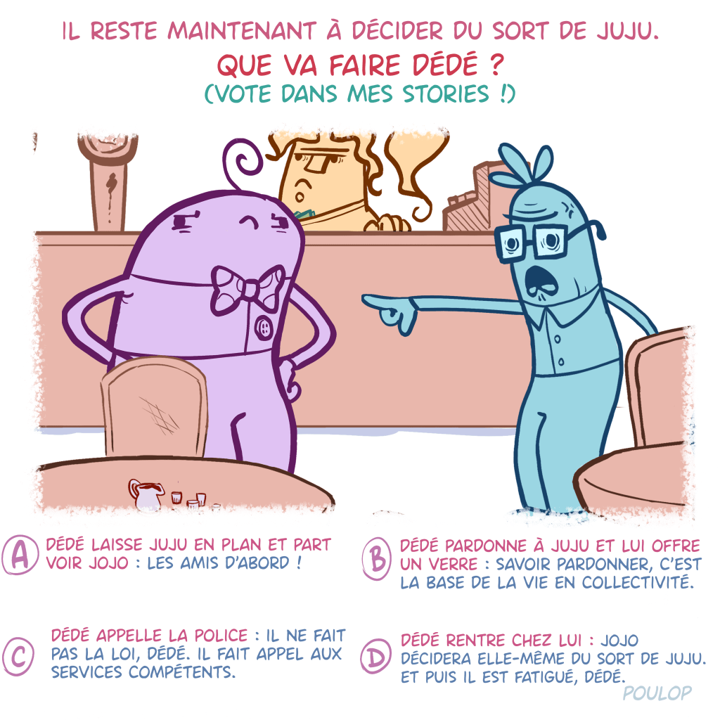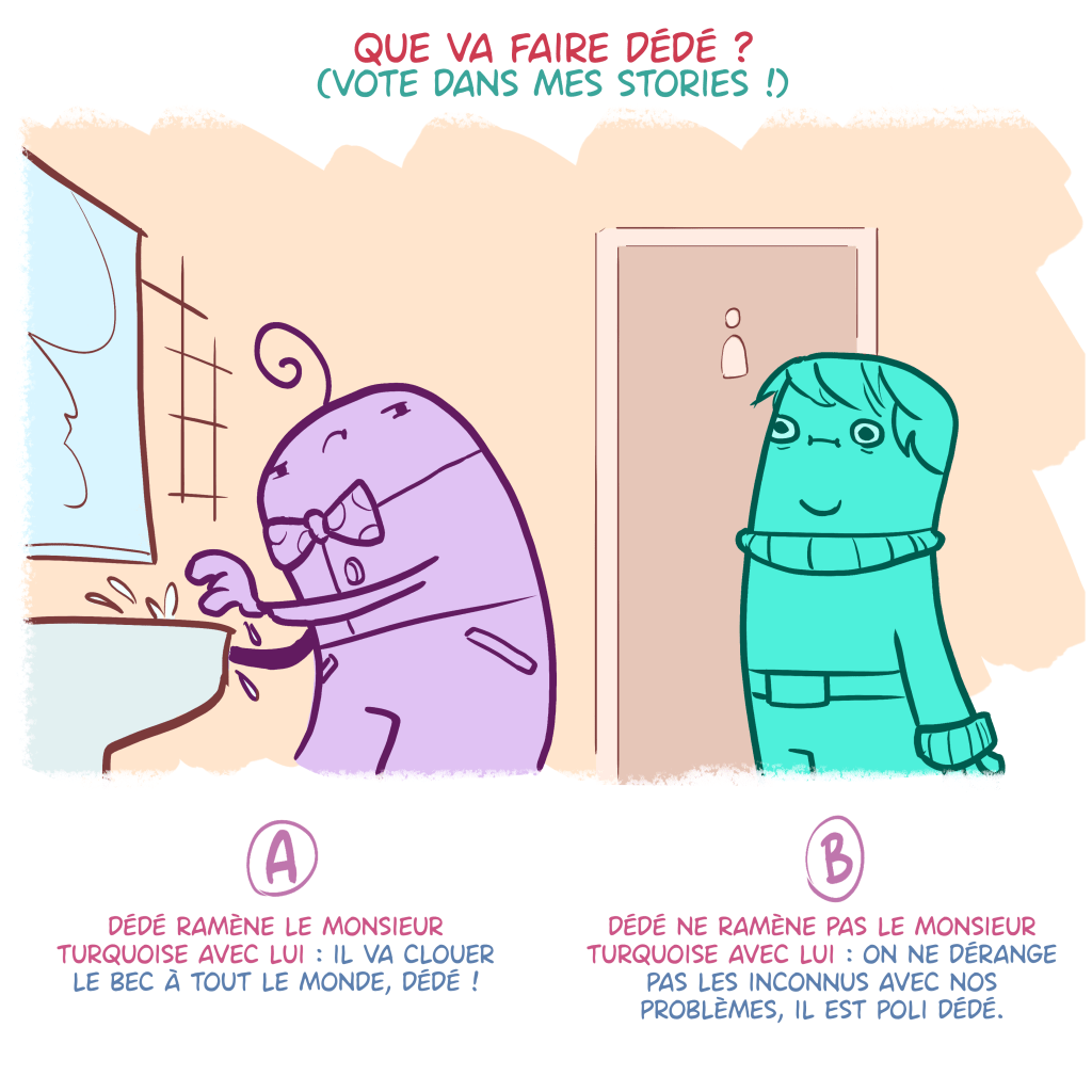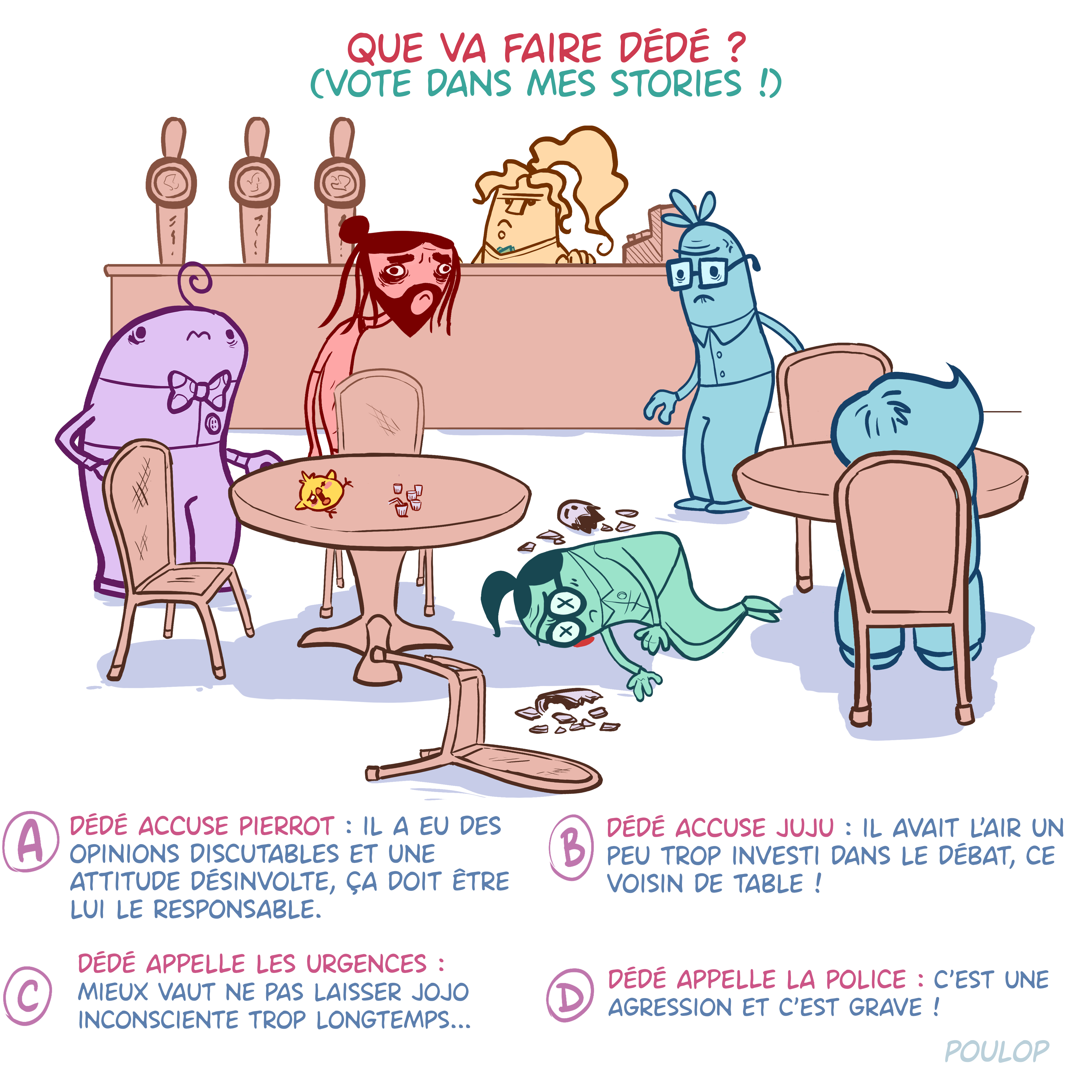 (note : cette histoire était interactive sur les réseaux sociaux au moment de sa publication, il n’est évidemment plus possible de voter ici. Les choix sont là pour rappeler les possibilités qu’avaient les lecteurs et lectrices au moment de la publication sur les réseaux sociaux.)